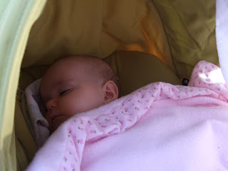 A marota da Mana, como leva as noites a acordar a toda a hora, com os seus ataques de fomeca... deixou-se dormir! Eu joguei mini-golfe, encontrei o Daniel com o mano bebé, estive na Casinha da Roda (foi o primeiro sítio para onde corri!), andei no escorrega grande, vi os patos, pombos, as tartarugas e os pássaros nas gaiolas... e ela dormia!